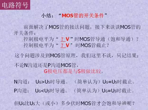 MOS管為壓控元件,你只要加到它的壓控元件所需電壓就能使它導(dǎo)通,它的導(dǎo)通就像三極管在飽和狀態(tài)一樣,導(dǎo)通結(jié)的壓降最小.這就是常說的精典是開關(guān)作用.去掉這個控制電壓經(jīng)就截止. MOS管 MOS管的英文全稱叫MOSFET(Metal Oxide Semiconductor Field Effect Transistor),即金屬氧化物半導(dǎo)體型場效應(yīng)管,屬于場效應(yīng)晶體管中的絕緣柵型。因此,MOS管有時被稱為場效應(yīng)管。在一般電子電路中,MOS管通常被用于放大電路或開關(guān)電路。而在主板上的電源穩(wěn)壓電路中,MOSFET扮演的角色主要是判斷電位,它在主板上常用“Q”加數(shù)字表示。
