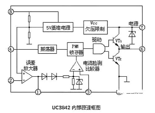 UC3842是一種性能優(yōu)異、應(yīng)用廣泛、結(jié)構(gòu)較簡(jiǎn)單的PWM開關(guān)電源集成控制器,由于它只有一個(gè)輸出端,所以主要用于音端控制的開關(guān)電源。