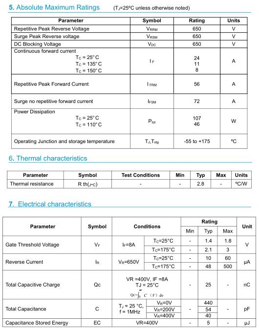 參數: IF(A): 8A    VRM(V): 650V    VF @ IF(V) 25℃: 26A    Package: TO-220-2