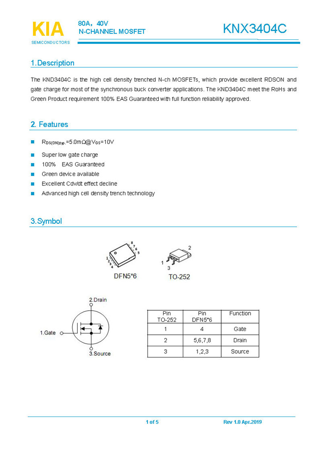參數(shù): ID(A): 80    BVDSS(V): 40    RDS(ON): 5    Qg(nC): 28    Package: DFN5*6.TO-252