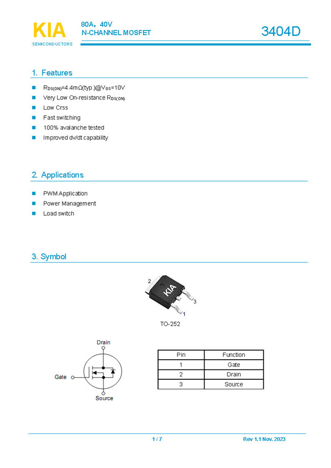關鍵詞: KND3404D