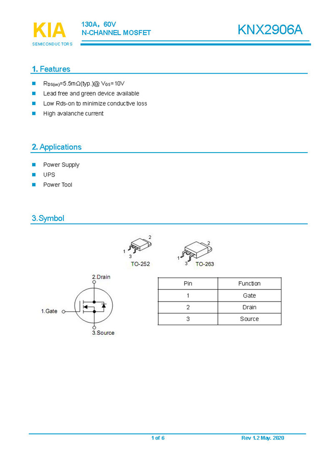 參數: ID(A): 130    BVDSS(V): 60    RDS(ON): 5.5mΩ    Qg(nC): 66.34    Package: TO-252.TO-263