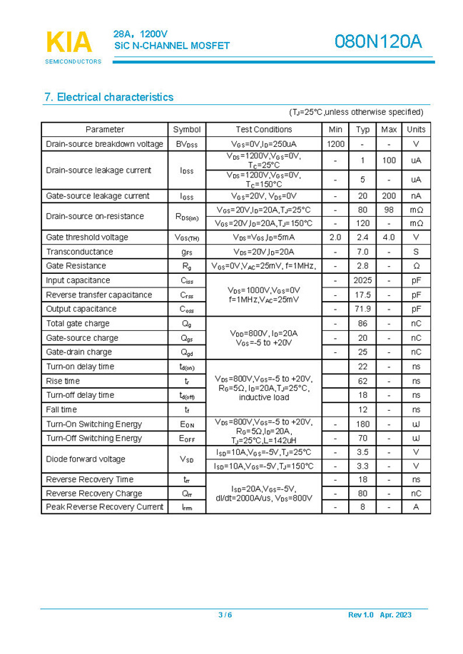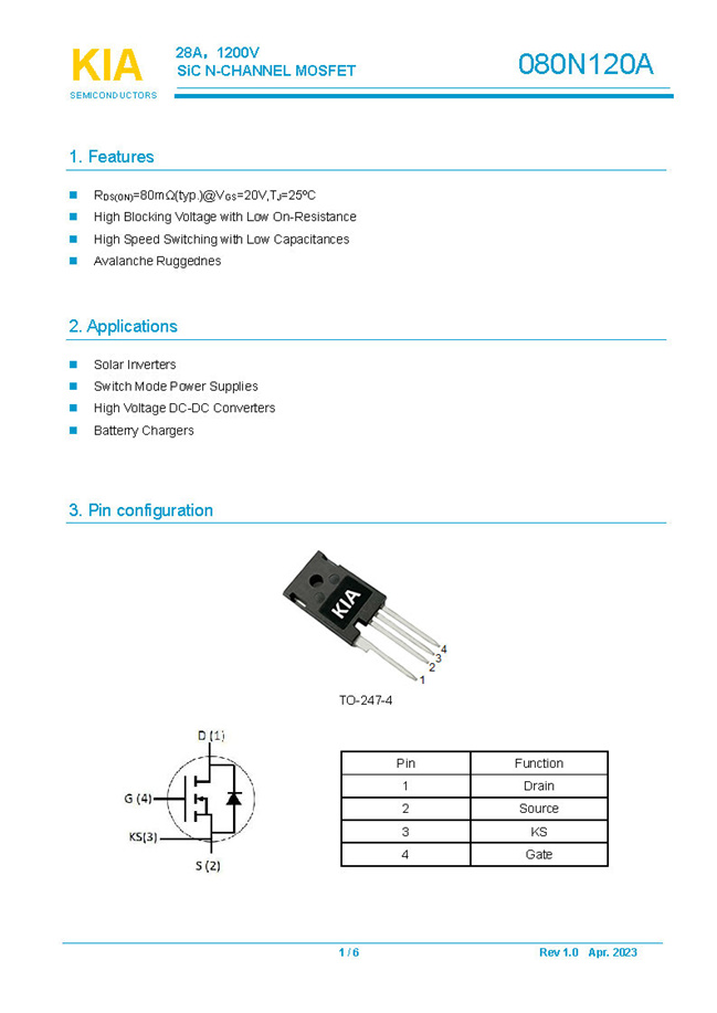 參數: ID(A): 28    BVDSS(V): 1200    RDS(ON): 80mΩ    Qg(nC): 86    Package: TO-247-4